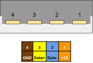 Usb a b 2 0 and 3 0 cable pinout. Pinout of usb and layout of 4 pin usb a or usb b plug connector and 4 pin usb a usb b mini usb jack connectorusb universal serial bus designed to connect peripherals such as mice keyboards scanners digital cameras printers hard disks and networking components to pc. The usb device that uses full speed bandwidth devices must have a twisted pair d and d conductors. Charging cables provide power connections but not data.